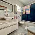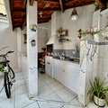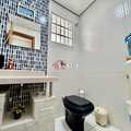 Área de serviço funcional com banheiro auxiliar.