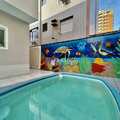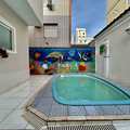 Quintal amplo com piscina e churrasqueira, ideal para lazer e confraternizações.